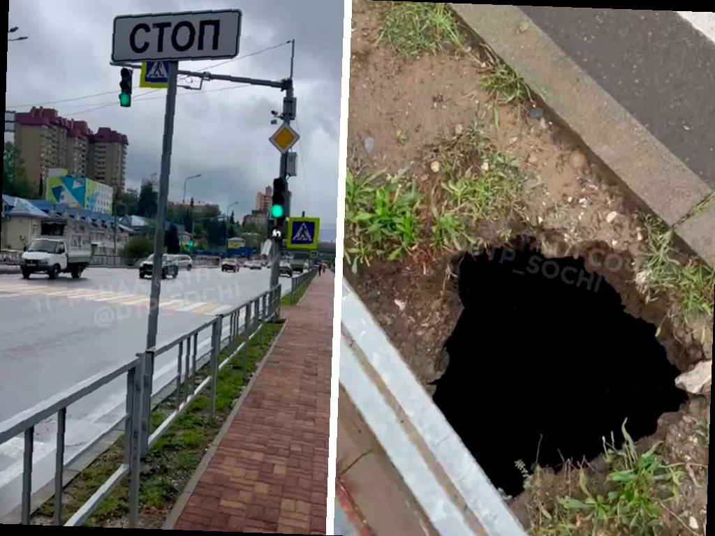 Недалеко от СГУ, на улице Пластунской, жители Центрального района Сочи обнаружили провал в грунте. Об этом сообщил телеграм-канал «ДТП Сочи», опубликовав видео с места события.