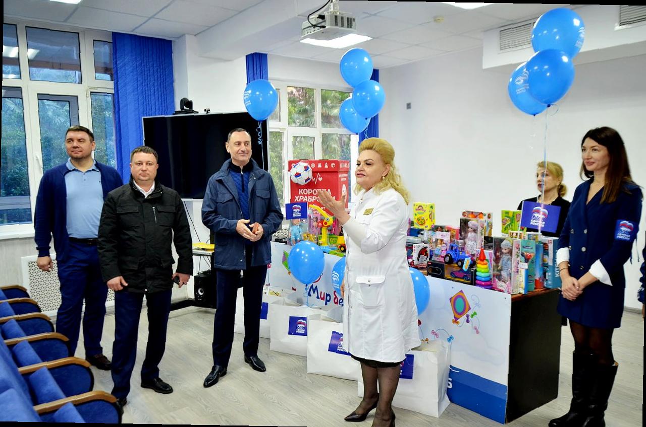 Вместе с Виктором Тепляковым в Сочинскую детскую больницу №9 пришел депутат Городского Собрания Сочи Денис Скрыгин.