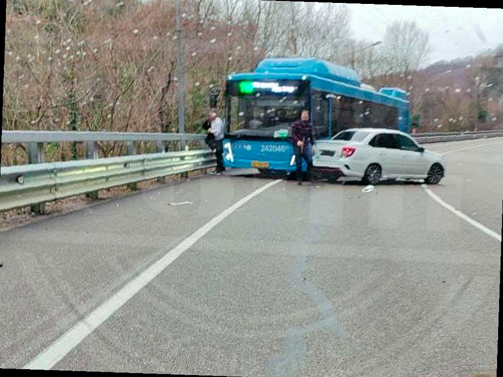 На дороге в Сочи произошло столкновение легковушки с автобусом