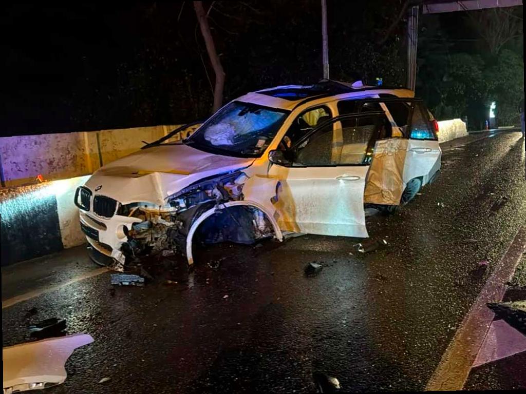 Утром в социальных сетях появились видео момента аварии. На записях видно, как автомобиль при столкновении с бетонным блоком ограждения прямо-таки подпрыгнул. Автомобиль серьезно пострадал от удара.